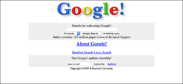 Salah satu situs yang kamu pingin tahu bagaimana tampilannya 10 tahun lalu adalah Google. Masih ingat waktu itu ada tampilan pencarian Linux khusus di berandanya atau Stanford University punya hak cipta khusus di Google, seperti diatas tampilan persisnya.